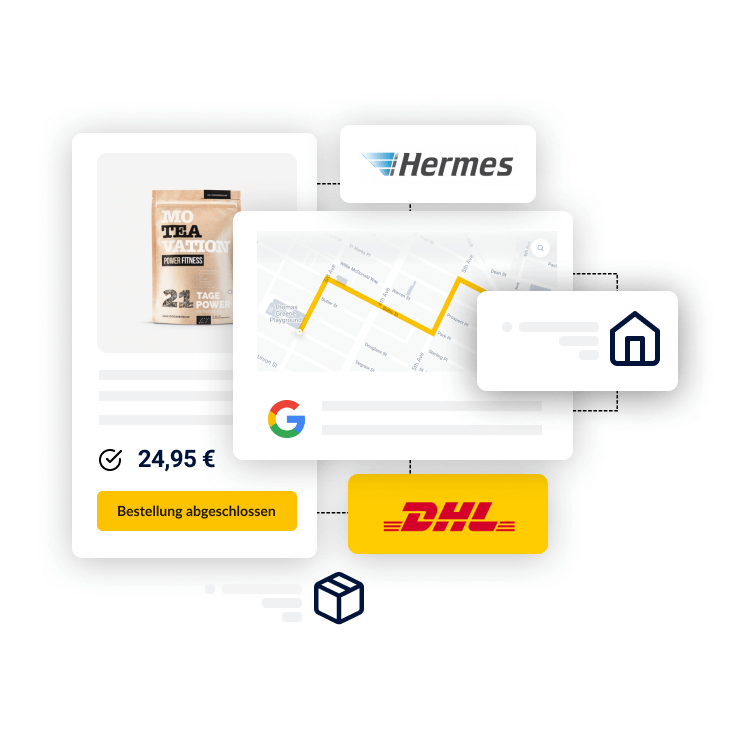Collaborate with all relevant shipping providers via a single integration. The connected providers include DHL, UPS, GLS, DPD etc.